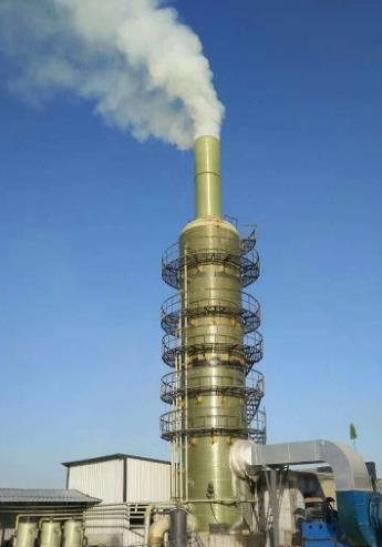 The primary stage includes a Venturi Eductor Nozzle section operating with lime followed by the final scrubbing with caustic solution using multi stage tray/spray tower, spray tower is spray header by using some large-flow spiral nozzles or tangental-flow hollow cone nozzles from RELAB.